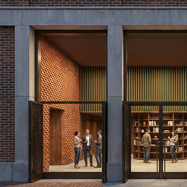 The Katz Center renovation reframes the existing building as a porous academic interior, reshaping entry, gathering, and upper-level rooms through selective intervention. A restrained palette of wood, glass, and metal integrates architecture, furniture, and display, allowing scholarship and public life to remain foregrounded, visible.
